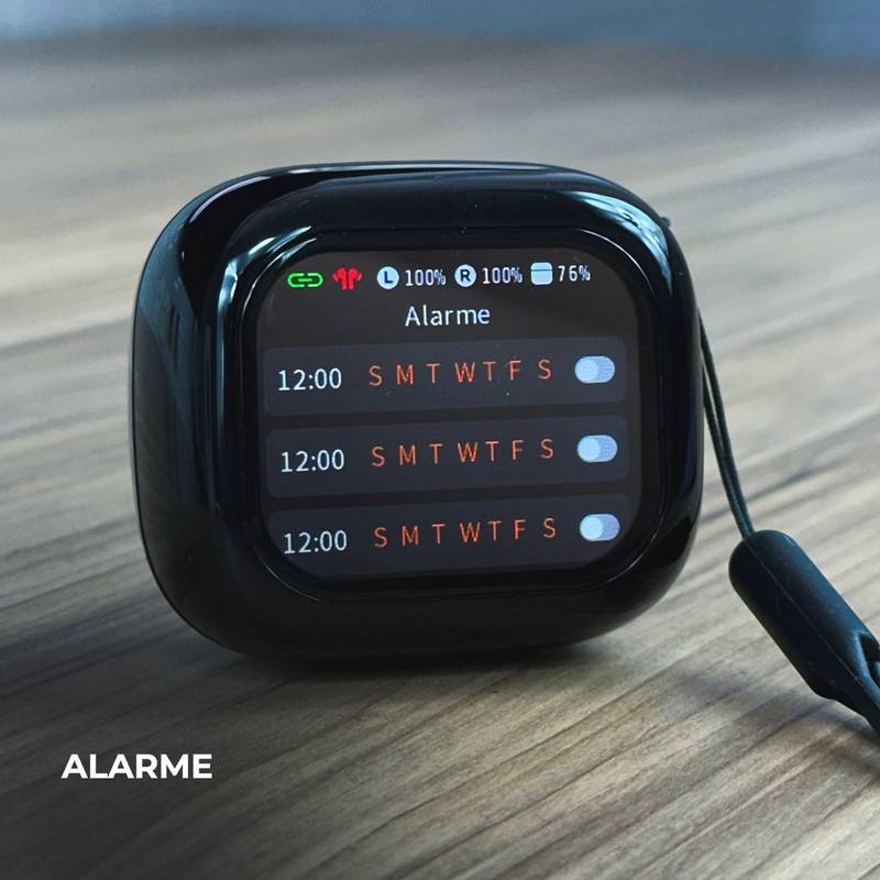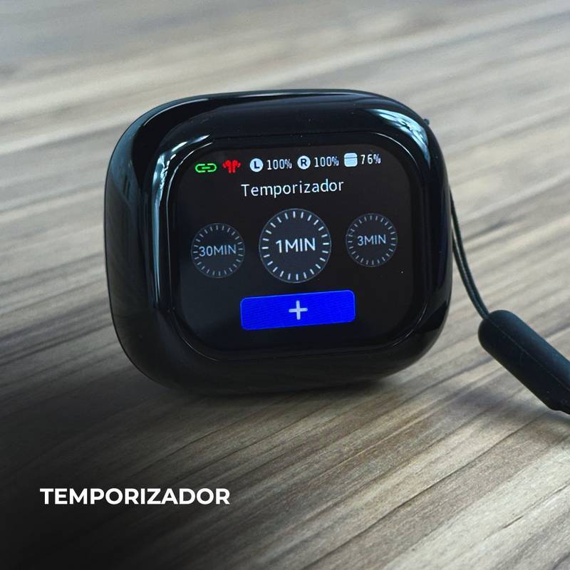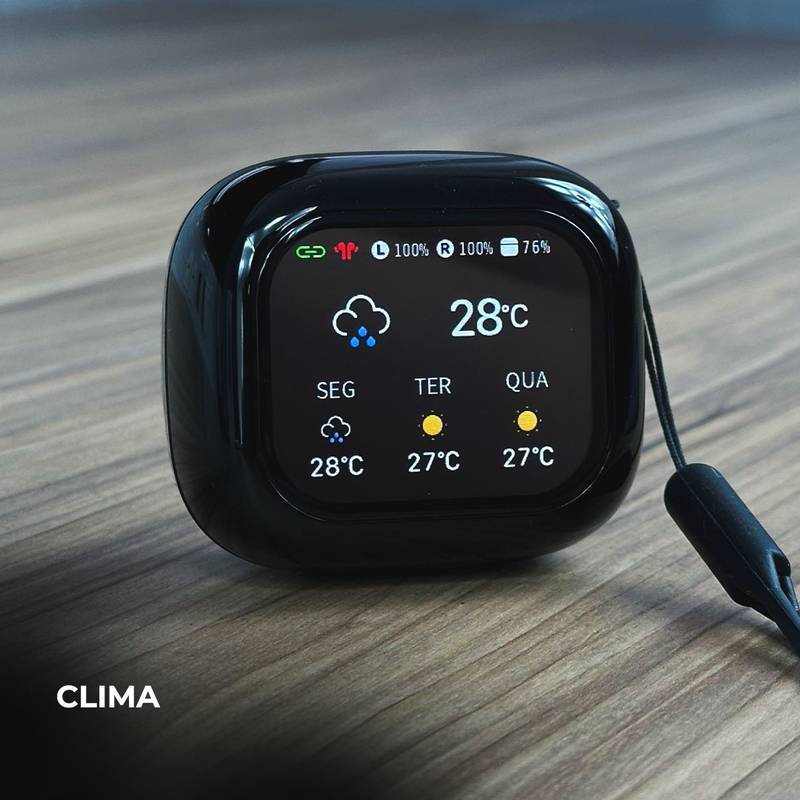 Novos fones WT-7, são fones para quem procura algo fora do comum. Fone Bluethooth com ANC( Cancelamento de Ruído). Com um Smart Case funcional de tela LCD 2.01'' permitindo que você tenha mais controle sobre tudo, e pareado ao celular você consegue ter localização em tempo real, passar e pausar música, recebendo as principais notificações de fazer ligações. Tudo isso direto na case, e muito mais...