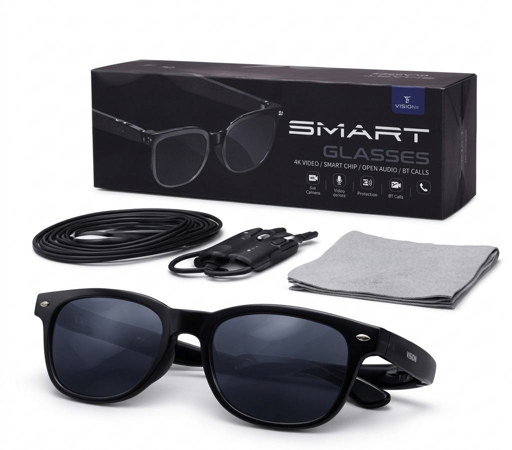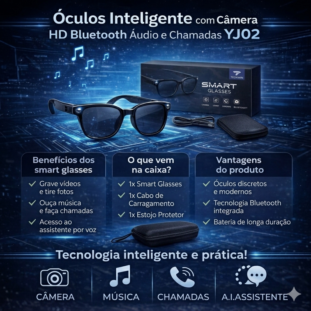 Óculos Inteligente com Câmera HD Bluetooth Áudio e Chamadas