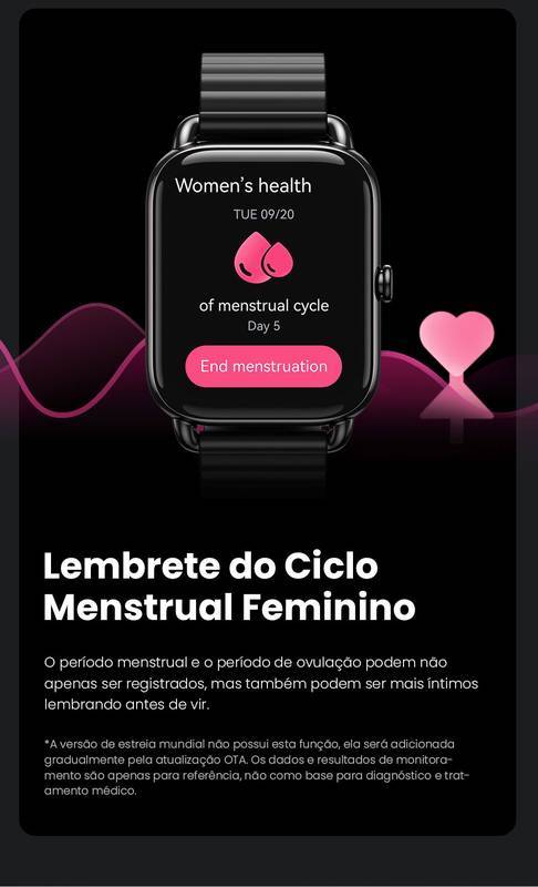 Recursos adicionais: Lembretes sedentários, monitores de sono, alarmes, barômetros, ajuste de brilho, etc.