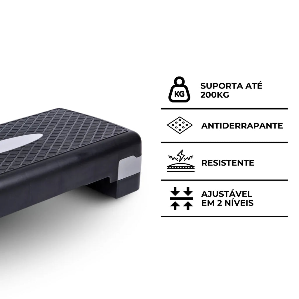 - Altura Ajustável: Permite a escolha entre dois níveis (10 cm e 15 cm), facilitando a adaptação da intensidade do treino.