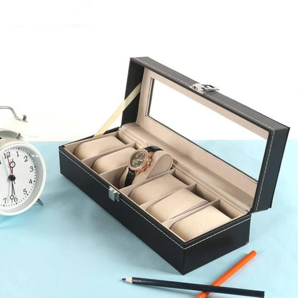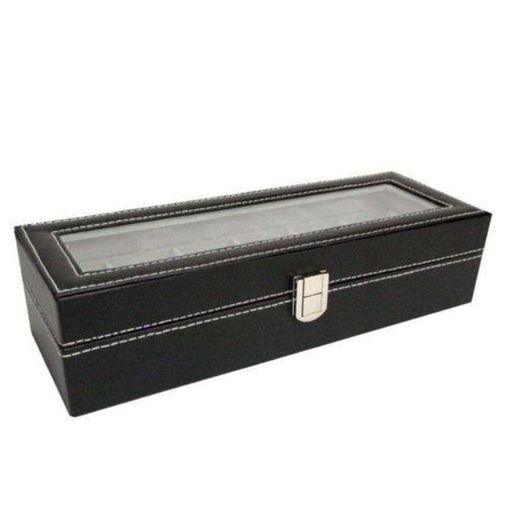 Caixa Estojo Porta 6 Relógios em Couro com Visor Organizador