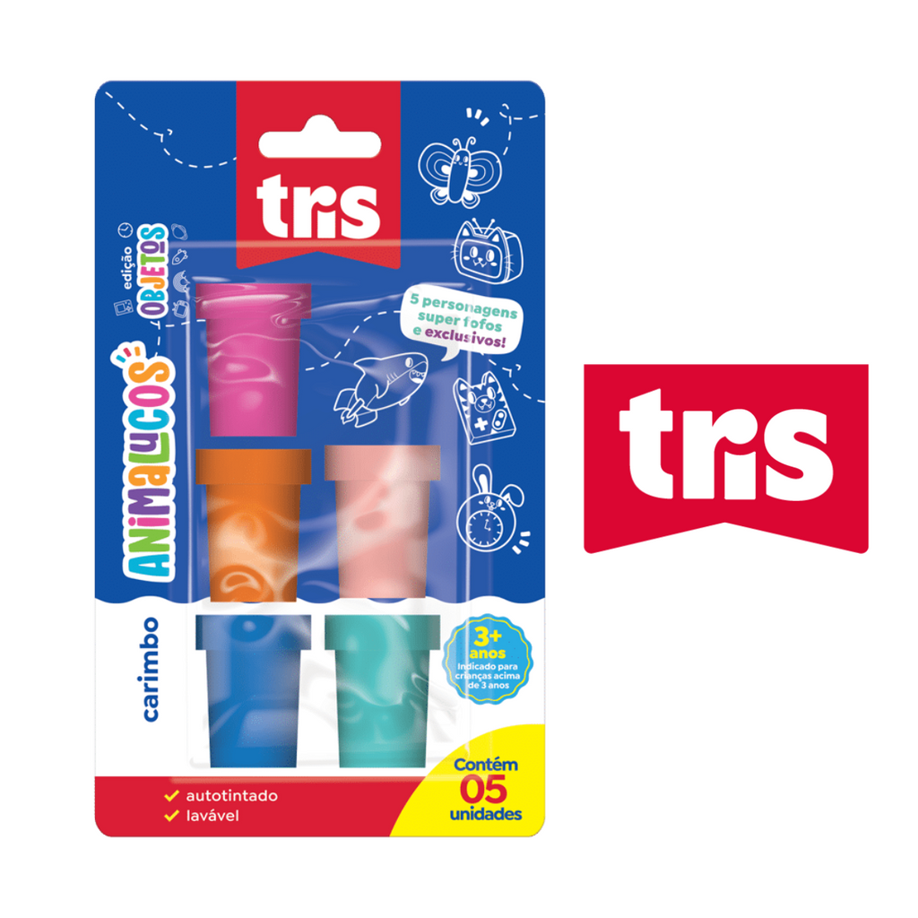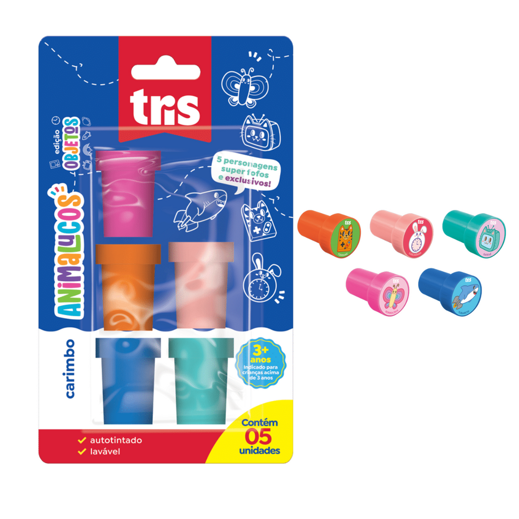 CARIMBO ANIMALUCOS EDIÇÃO OBJETOS COM 5 UNIDADES - TRIS