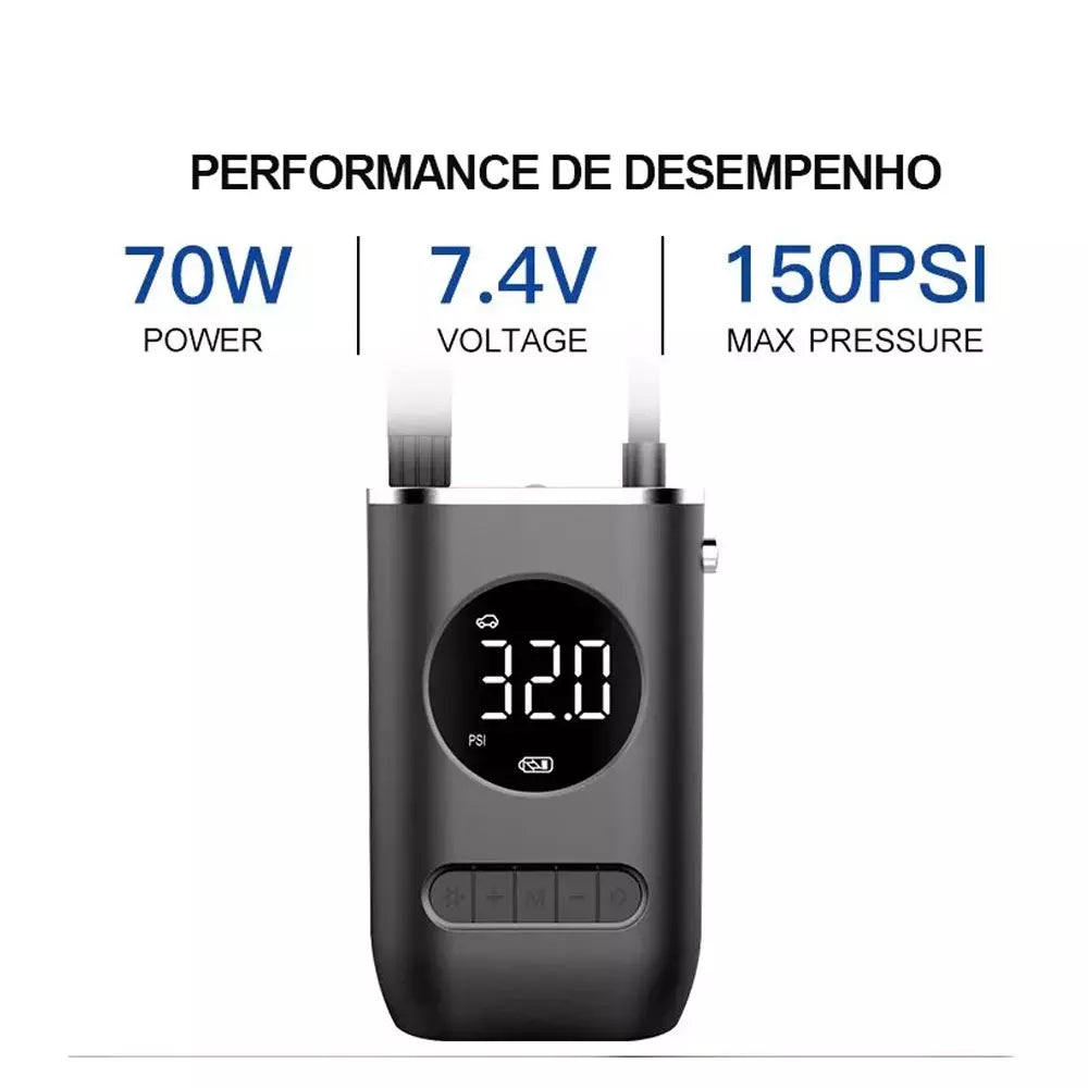 -Desempenho Potente: Equipado com um motor de alto desempenho, este compressor oferece uma inflação rápida e eficiente, proporcionando pressão adequada em pneus de veículos, bicicletas, colchões de ar, brinquedos infláveis e muito mais.