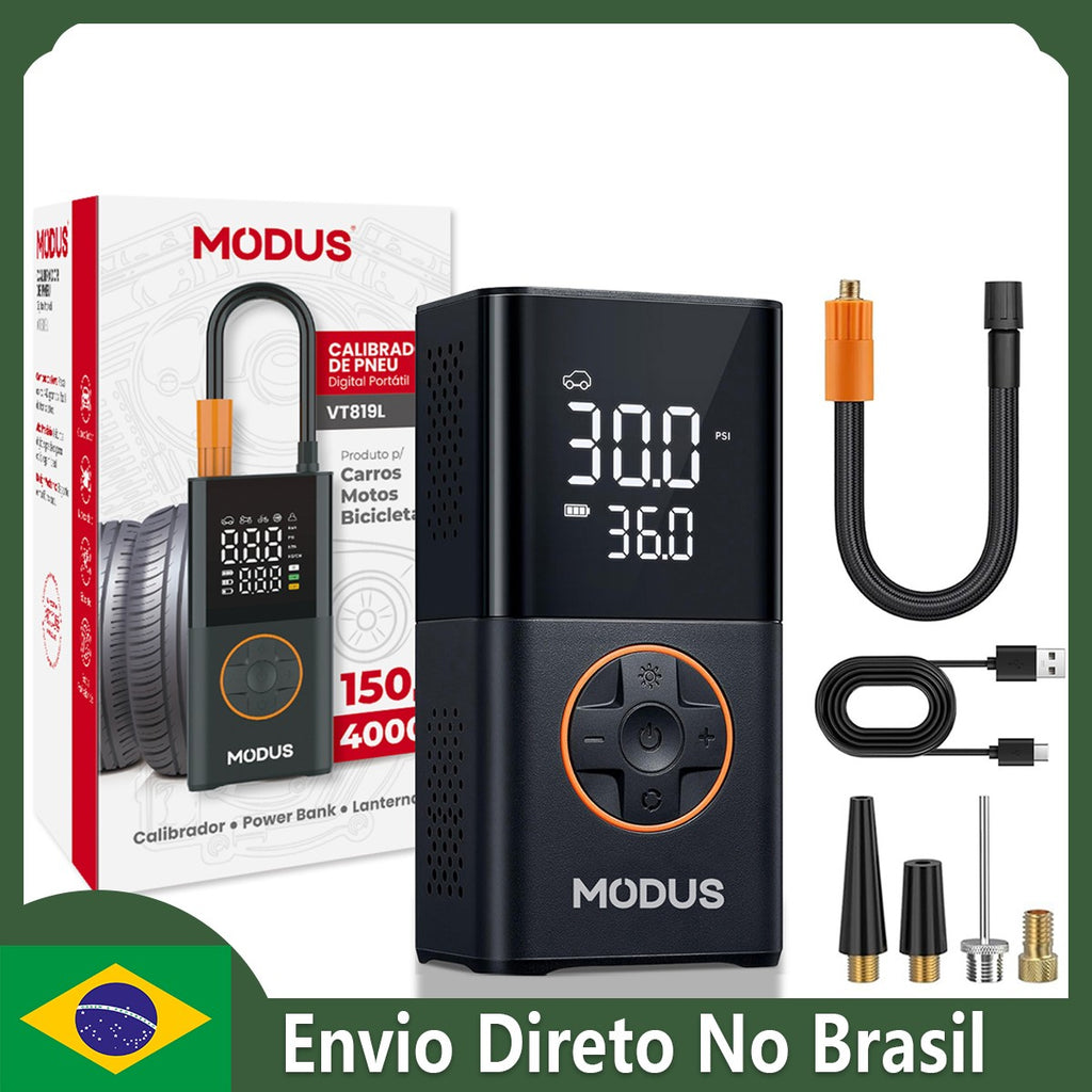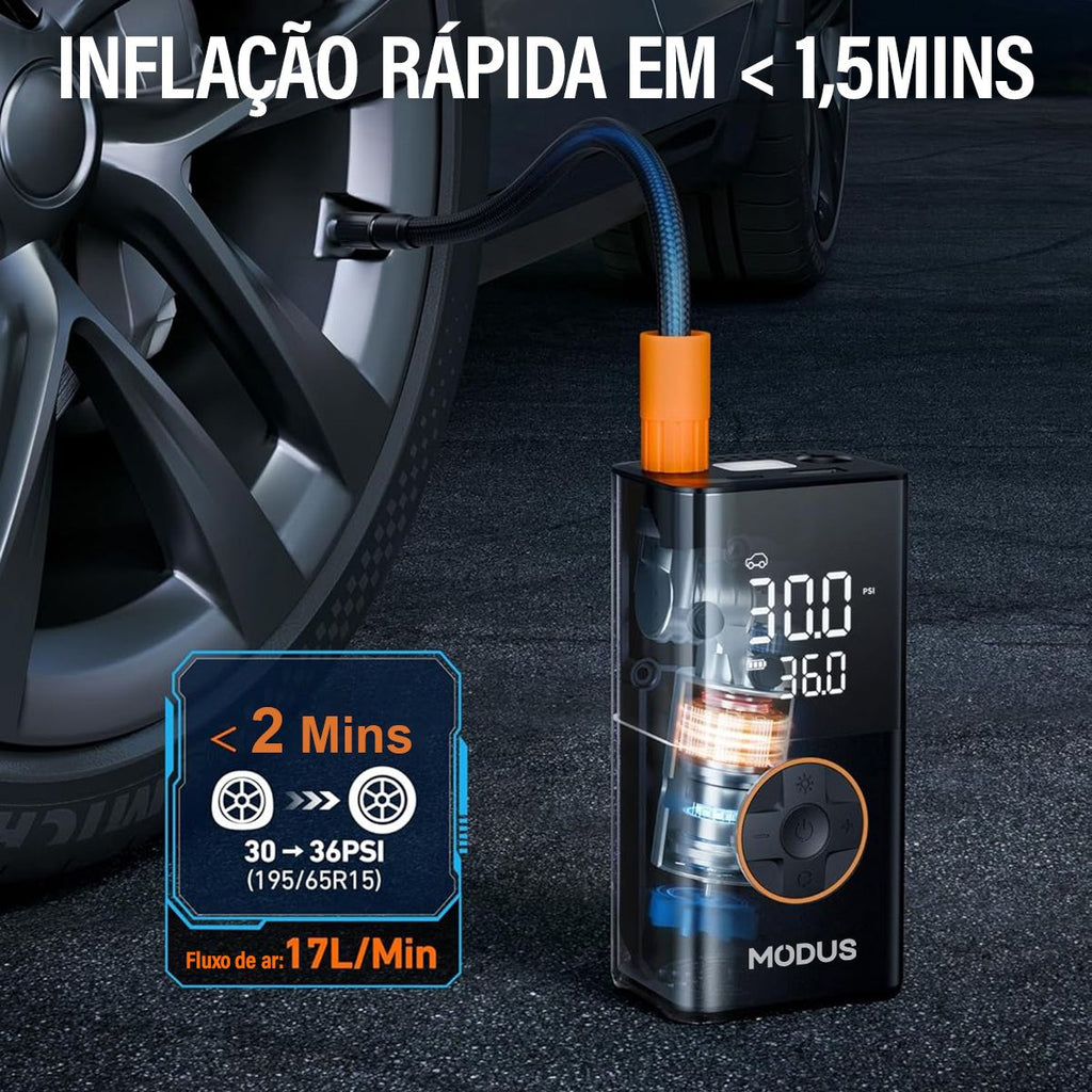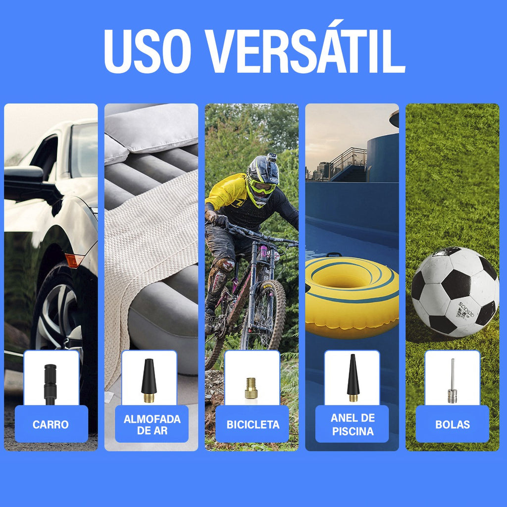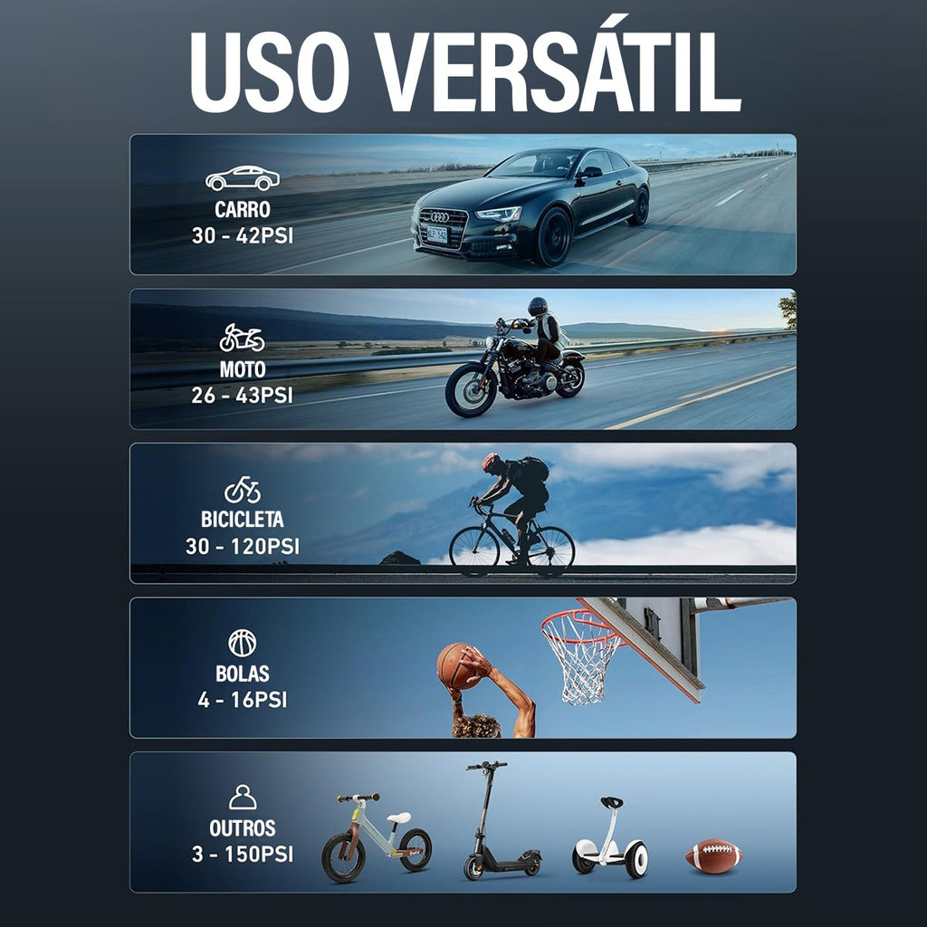 Compressor de Ar Recarregável Portatil com Calibrador e Luz de Emergência