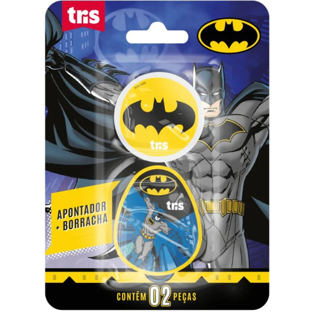 Basic Set Batman com 2 peças! Borracha Top: possui textura macia e é livre de PVC + Apontador com depósito: lâmina antiferrugem e com depósito que evita sujeiras.